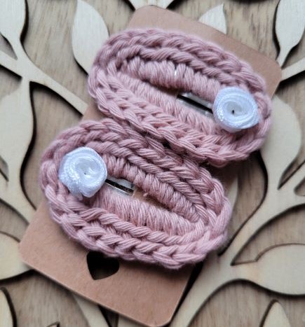Kézzel horgolt hajcsat fehér virágdísszel. Párban érkeznek.  Méretek: 5x3.2cm.  Fonal anyaga 100% puha pamut. Kézzel mosható.